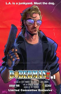 | Doberman TP IDW Comics (W) Scott Marder & Various (A) Brandon McKinney (CA) Bernard Chang Frank Doberman was the greatest detective of his era with the fastest car, biggest gun, and longest... um... arrest record. But after a drug bust went horribly wrong, Doberman disappeared, seeking solace in Mother Nature. Now lured back to the Force by the promise of vengeance, and an ice-cold six-pack, Doberman has to deal with a new age of computers, regulations, and an uber-villain whom the world seems to believe has changed his ways. |